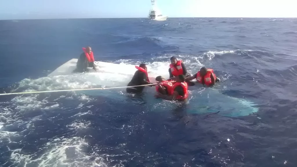 La embarcación zozobró por las pésimas condiciones climáticas. En tanto que agentes de la División de Inteligencia Naval persiguen a Juan Pablo Medina Medina y José Luis Montero Féliz, sindicados como los organizadores y capitanes del frustrado viaje a Puerto Rico.