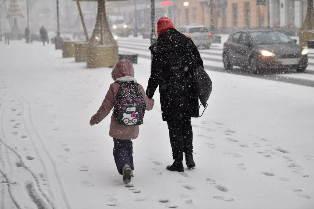 Fuerte nevada en las calles de Varsovia, Polonia, 17 de enero de 2022. Además de la nieve, los habitantes de la capital también se vieron sorprendidos por una fuerte tormenta. EFE
