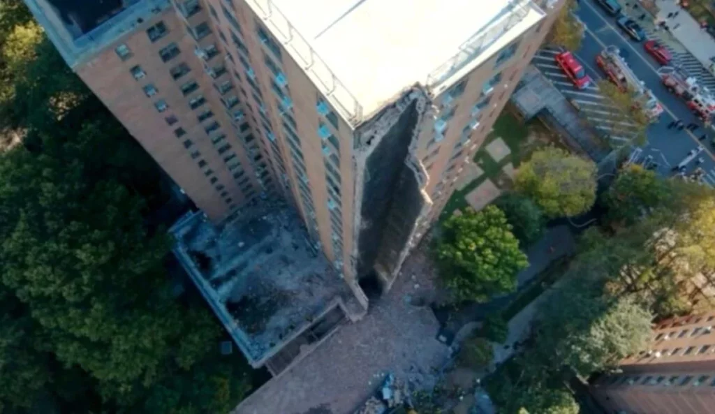 Imágenes del incidente muestran escombros y, de acuerdo con algunos medios, su fuerza arrojó aires acondicionados y ladrillos hacia otros edificios del complejo de apartamentos.