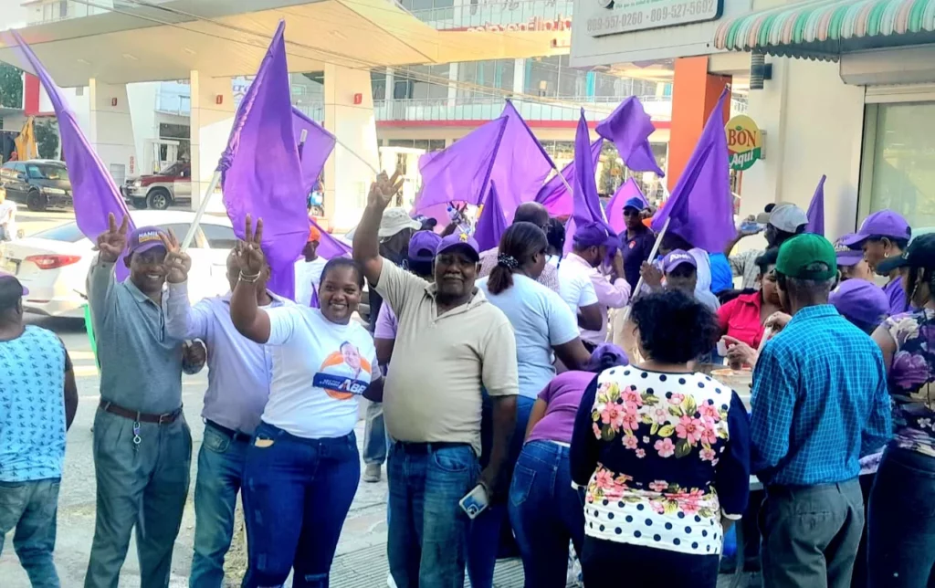 De forma organizada, colocándose en las aceras o en las orillas de las carreteras, se exhibía con orgullo el color morado del PLD con la estrella amarilla.