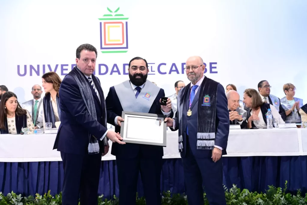 También, el doctor Emilio Mínguez, rector de UNICARIBE y el maestro José Alejandro Aybar, Canciller de UNICARIBE, entregaron un reconocimiento y una sortija a Zishan Ahmed por su buen desempeño académico.