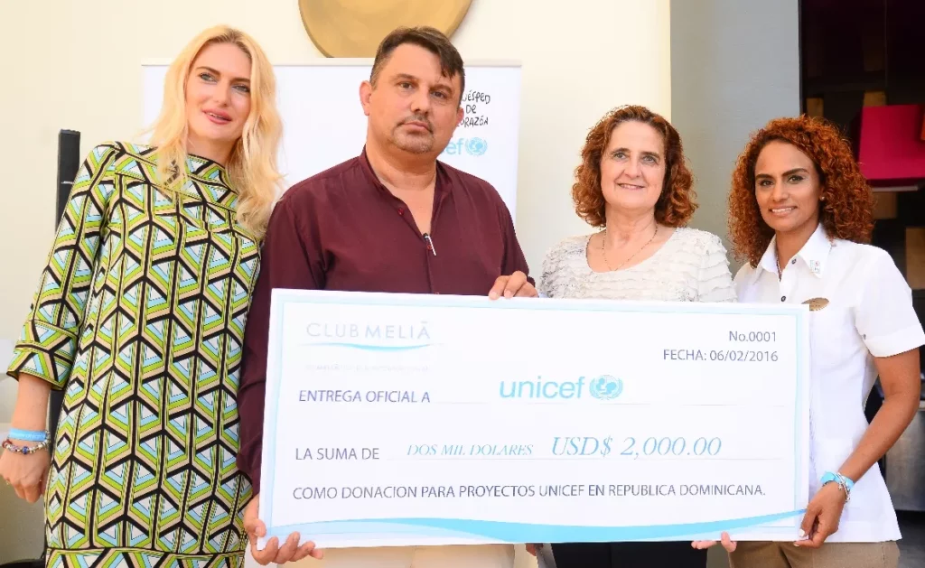 L os ejecutivos y colaboradores del Club Meliá de Paradisus Palma Real Resort realizaron formal entrega a Unicef de un cheque por valor de dos mil dolares, como resultado del concurso anual que realizan los clubes Meliá República Dominicana.