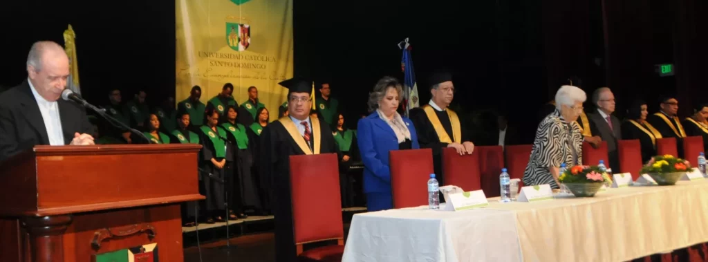 La ceremonia se efectuó en el auditorio de la Casa San Pablo y fue presidida por el rector de ese centro de estudios, el padre Jesús Castro Marte, el cardenal Nicolás de Jesús López Rodríguez y autoridades universitarias, y tuvo como orador invitado al empresario José Luis Corripio Estrada, quien habló a los graduados sobre economía y cómo ser un empreasario exitoso.