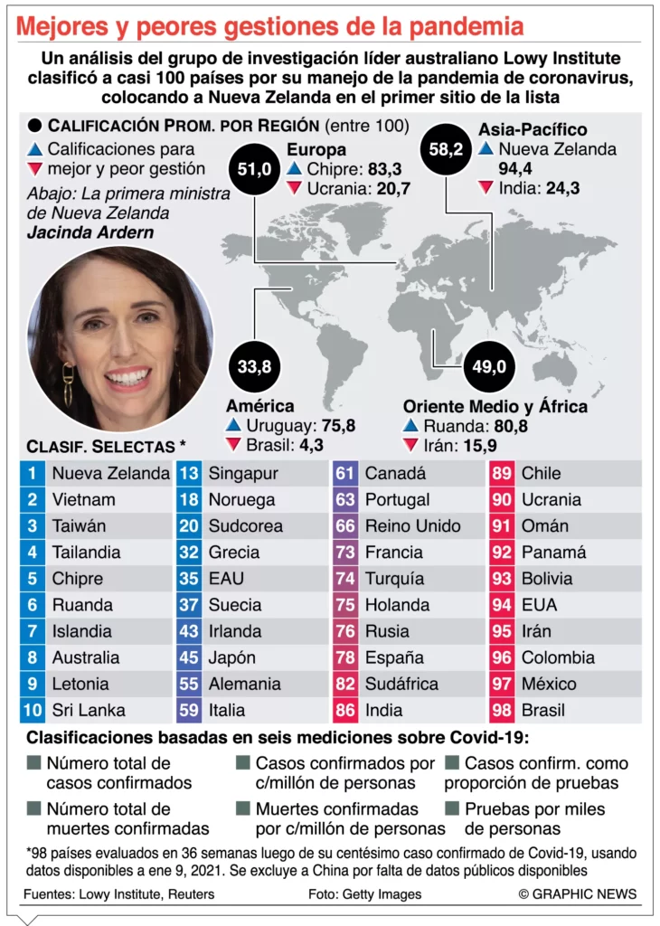 Otro de los pioneros latinoamericanos en la inmunización es Chile, que también optó por Pfizer, de la cual hasta el pasado 26 de enero 56,549 personas habían recibido al menos una dosis y casi 10,000 las dos.