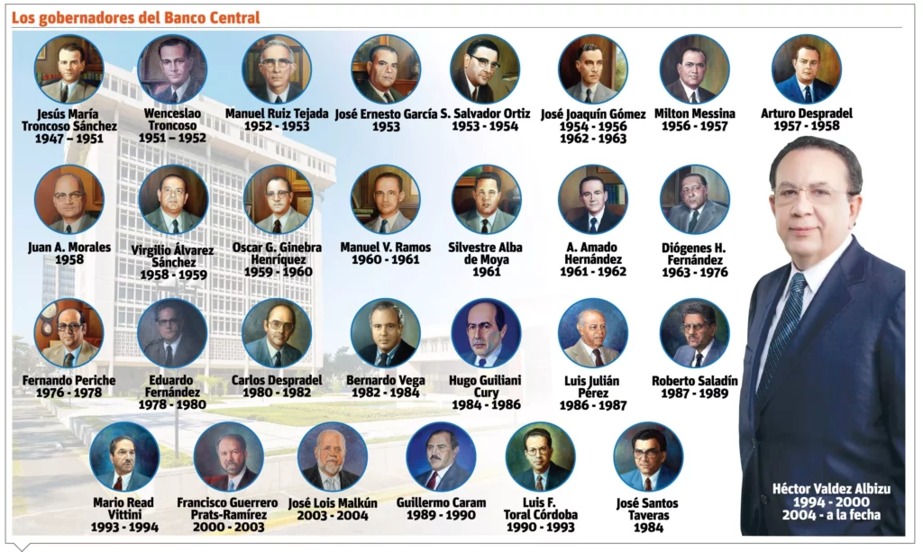 El Banco Central ha tenido 29 gobernadores desde su fundación en 1947 hasta la fecha, y sacando a Valdez Albizu, el promedio de duración de esas gestiones es de 1.8 años.