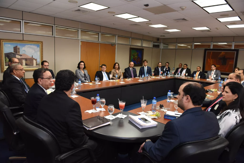 En la reunión, el gobernador estuvo acompañado por el gerente, Ervin Novas, el subgerente de Políticas Monetaria, Cambiaria y Financiera, Joel Tejeda, la tesorera, Carolina Ramos, y los directores Ramón Rosario y Rafael Capellán, de los departamentos de Regulación y Estabilidad Financiera e Internacional, respectivamente.