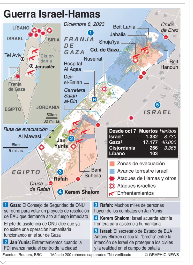 El secretario de Estado señaló que esto podría terminar mañana “si Hamás se apartara del camino de los civiles en lugar de esconderse detrás de ellos, si depusiera sus armas, si se rindiera". Blinken dijo que están tratando de hacer todo lo posible para garantizar que los civiles estén protegidos y que la asistencia humanitaria llegue a las personas que la necesitan en Gaza.