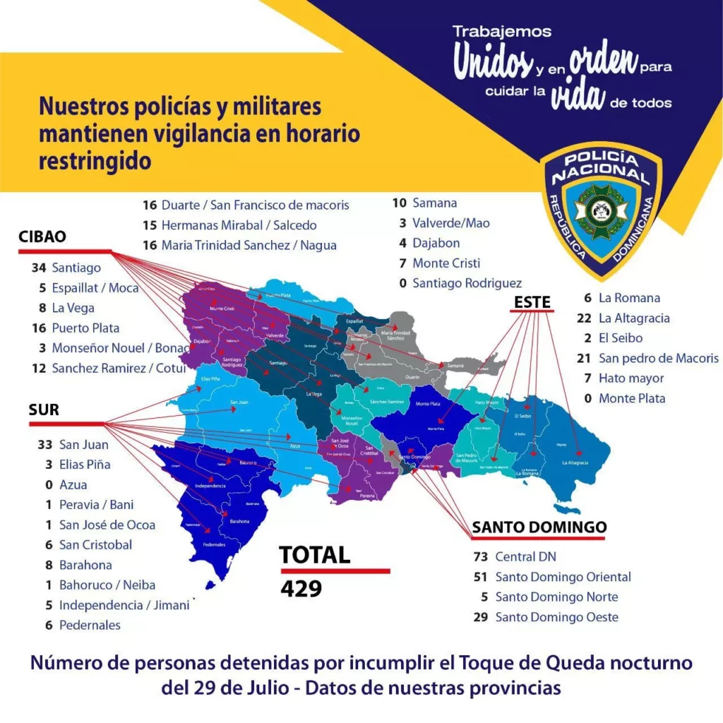 SANTO DOMINGO.-Durante los 10 días de vigencia del toque de queda, el cual busca reducir la propagación del Covid-19 a nivel nacional, se han detenido 6,086 personas por incumplir esa medida.