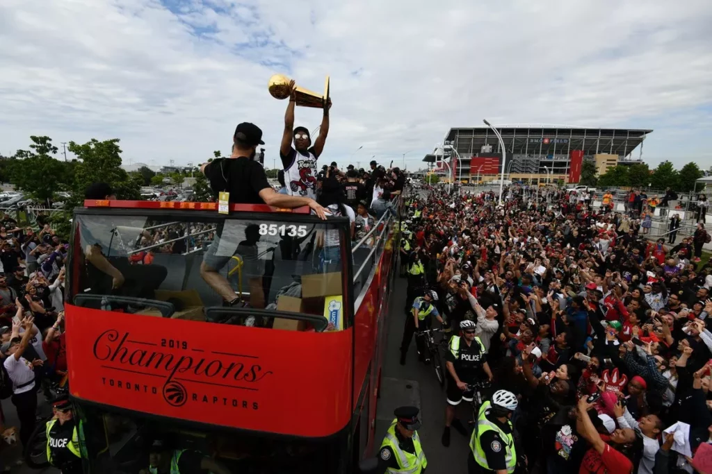 Debido a las estampidas se vació una cuarta parte de la superficie de la plaza Nathan Phillips Square, donde se instaló un escenario en el que los integrantes de los Toronto Raptors se dirigen a sus seguidores.