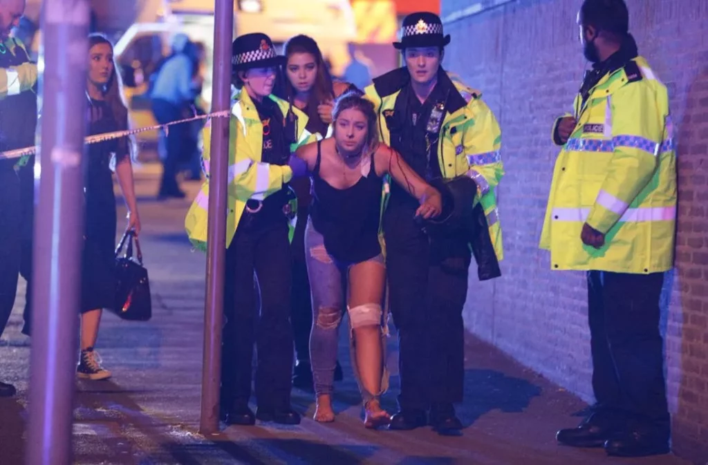 Imágenes de televisión mostraban a la policía y a los servicios de emergencia llegando en grandes números al pabellón, mientras que el servicio ferroviario en la vecina estación de Manchester Victoria se detuvo, y los pasajeros fueron evacuados.