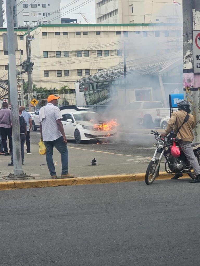 Santo Domingo.- La tarde de este miércoles se registró un incendio vehicular en la intersección de las avenidas Ortega y Gasset con John F. Kennedy, en el Distrito Nacional, lo que generó preocupación entre conductores y transeúntes que se encontraban en la zona.