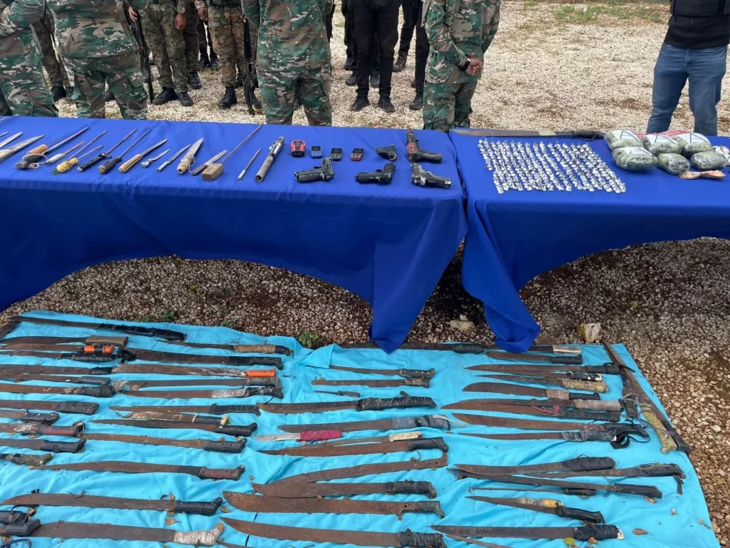 Además, 418 porciones de presunta cocaína, con un peso aproximado de 6,482 gramos. Además, se incautaron armas de fuego, incluyendo pistolas, revólveres, armas de fabricación no industrial y armas blancas. Así como radio de comunicación.