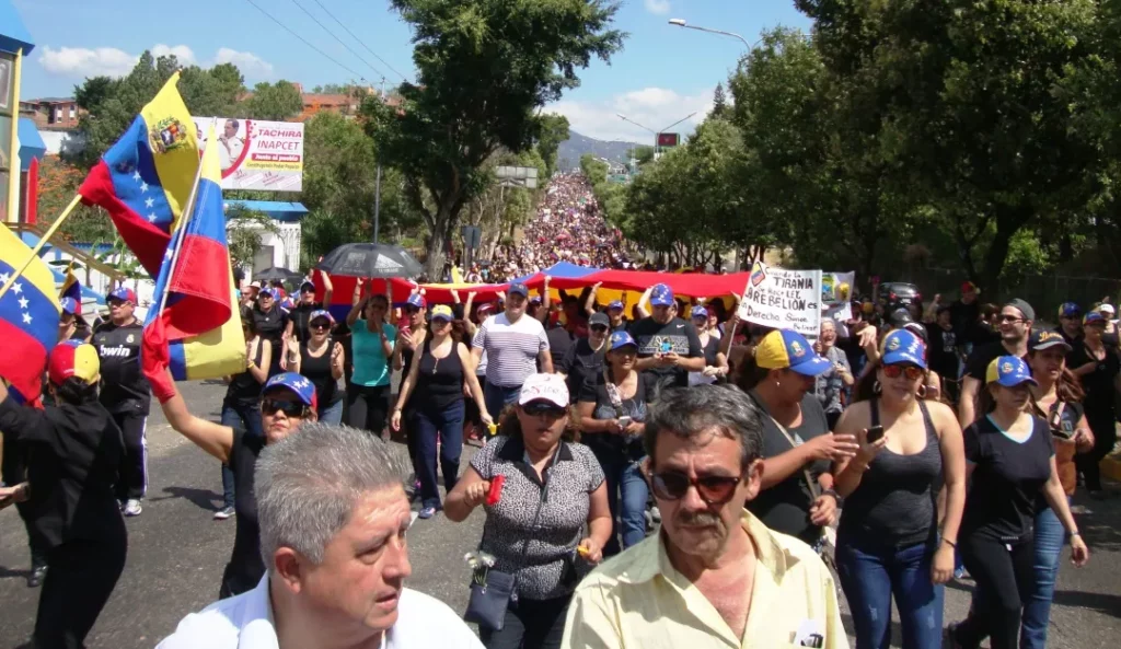 Las decenas de ciudadanos portaban carteles exigiendo ayuda humanitaria debido a la escasez de medicinas y materiales médicos que se registra desde hace cinco años.