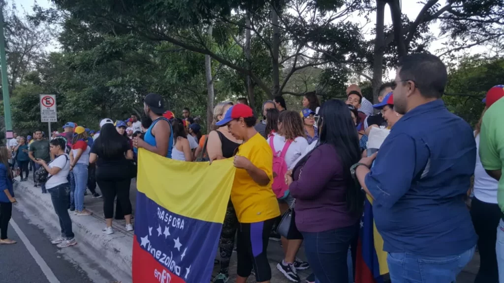 Los venezolanos a coro gritaban "fuera fuera", a los funcionarios diplomáticos de la embajada.