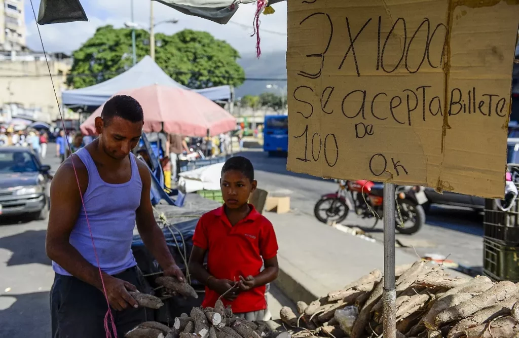 CARACAS, Venezuela.– "Yuca a 3×1000. Se aceptan billetes de 100. OK", reza un letrero de cartón en una venta ambulante del popular barrio Petare, corazón del mercado negro de Caracas. Pero los problemas por la falta de efectivo continúan atormentando a los venezolanos en vísperas de Navidad.