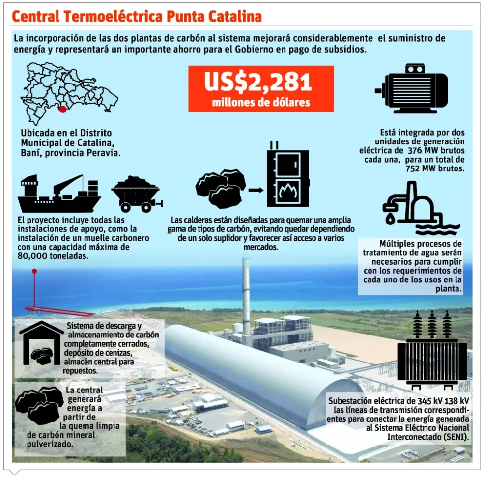 SANTO DOMINGO.-La venta del 50 % de las acciones de la Termoeléctrica Punta Catalina permitirá capitalizar el sistema eléctrico, recursos que el Estado usará para invertir en la expansión y mejoría de ese sector.