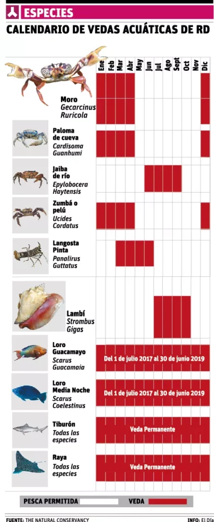 SANTO DOMINGO.- Dentro de las ventajas que ofrece el conocer las vedas que se establecen como estrategias de conservación de las especies, además de contribuir a su uso racional y sostenible, está el percatarse del peligro que en ocasiones provocan su consumo.
