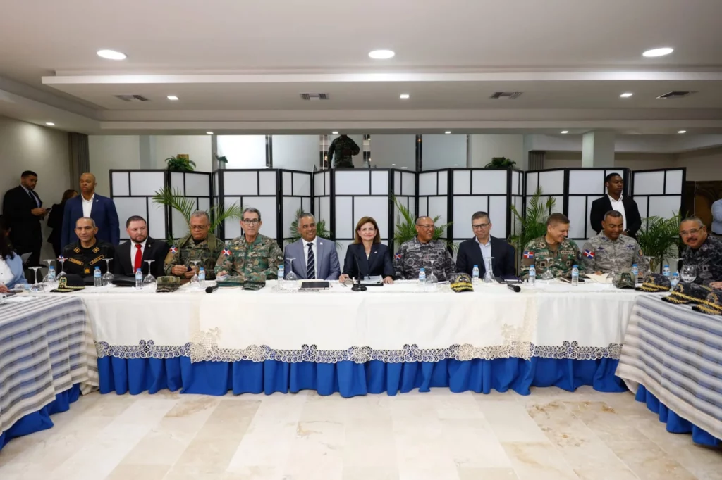 En compañía de la vicepresidenta están los ministros de la Presidencia, Joel Santos; y de Defensa, teniente general Carlos Luciano Díaz Morfa; el director de la Policía Nacional, mayor general Ramón Antonio Guzmán Peralta; el comandante general del Ejército, mayor general Carlos Antonio Fernández Onofre; el comandante general de la Fuerza Aérea, mayor el general, Carlos Ramón Febrillet Rodríguez y el comandante general de la Armada de República Dominicana, vicealmirante, Agustín Alberto Morillo Rodríguez.
