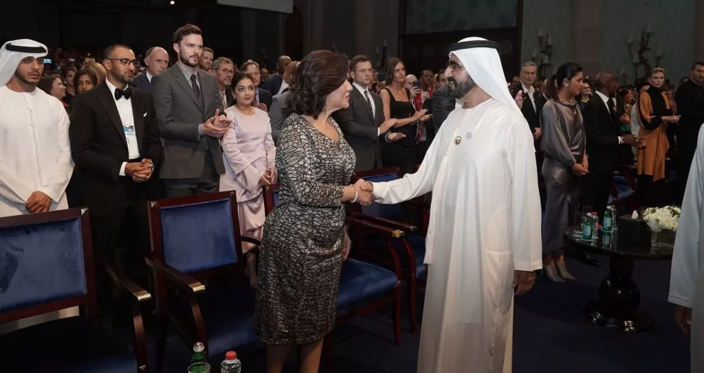 DUBÁI, Emiratos Árabes Unidos.- La vicepresidenta de República Dominicana, doctora Margarita Cedeño, participó este domingo aquí junto al primer ministro y vicepresidente de los Emiratos Árabes Unidos, Mohammed bin Rashid Al Maktoum, en la entrega del “Global Teacher Prize”, premio otorgado a un maestro innovador y comprometido por lograr un impacto inspirador en el alumnado.