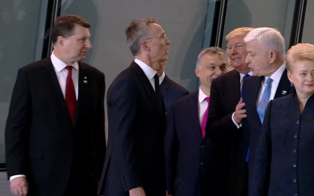 En un video que está circulando por Twitter se ve claramente cómo el presidente estadounidense empuja al primer ministro de Montenegro, Dusko Markovic, para poder ubicarse en la primera fila del grupo de los líderes de la OTAN.