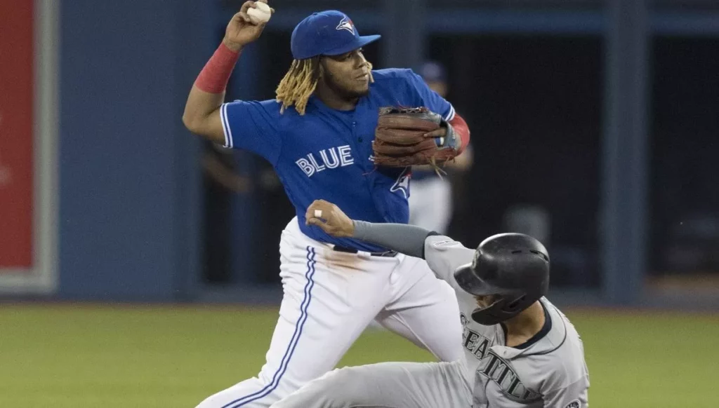 Después de torcerse la rodilla mientras atrapaba un rodado, Guerrero Jr. fue a una prueba de resonancia magnética, que finalmente mostró solo una inflamación menor.