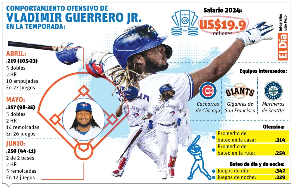 Toronto.-Las próximas semanas pueden determinar el futuro del dominicano Vladimir Guerrero Jr. en los Toronto Blue Jays.