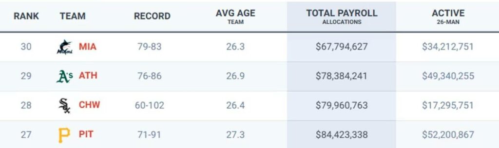El salario de Guerrero Jr. en 2026 será mayor que la nomina de Miami, que es el equipo con el salario más bajo en las Grandes Ligas, con tan solo US$22.3 millones. Los otros tres equipos con menos compromiso con toda su plantilla son los Piratas (US$33.2 millones), los Baltimore (US$34.7 millones) y White Sox (US$38 millones).