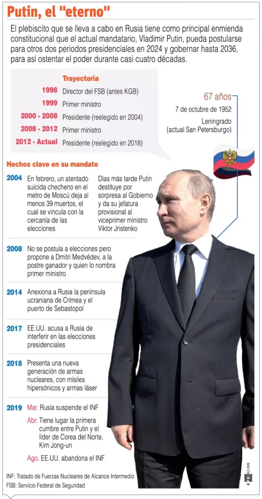 MOSCÚ.-El presidente ruso, Vladímir Putin, obtuvo ayer el apoyo mayoritario de los rusos para seguir en el Kremlin más allá de 2024, en un plebiscito constitucional muy criticado por la falta de transparencia y las excepcionales condiciones sanitarias en las que se celebró debido a la pandemia de coronavirus.