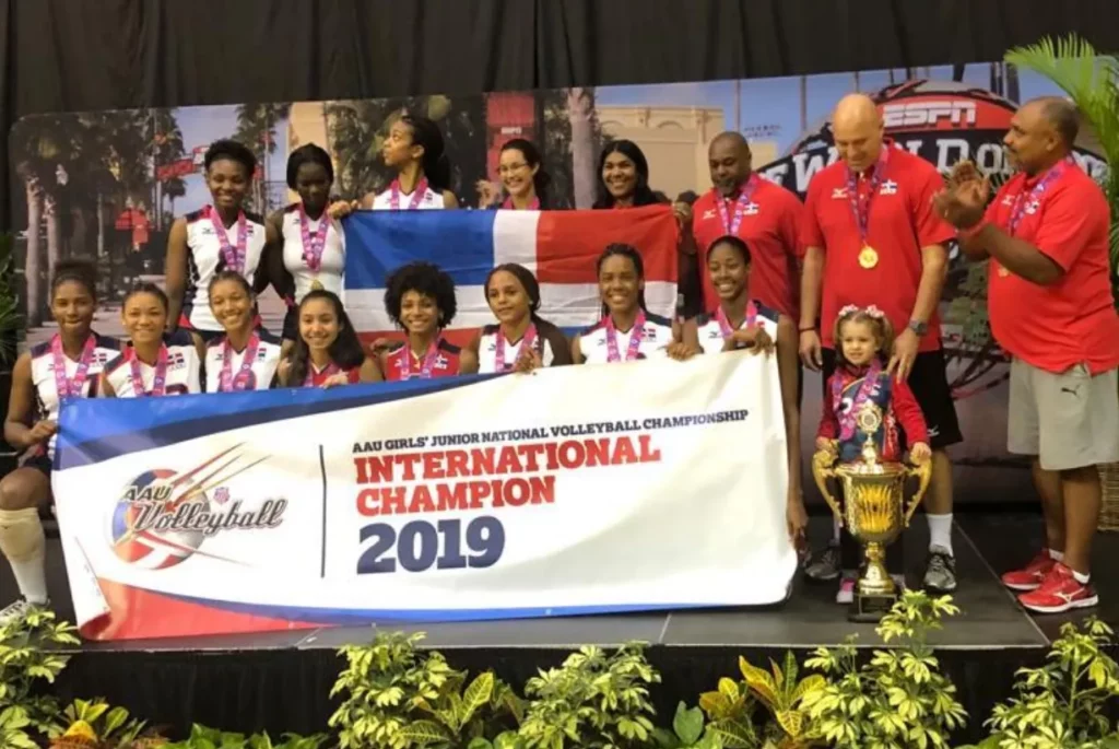 ORLANDO, FLORIDA.-El equipo de voleibol femenino Sub-20 de la República Dominicana se coronó campeón de la División Internacional del 46.° Campeonato Juvenil Nacional de Voleibol de la AAU por tercer año consecutivo el lunes.