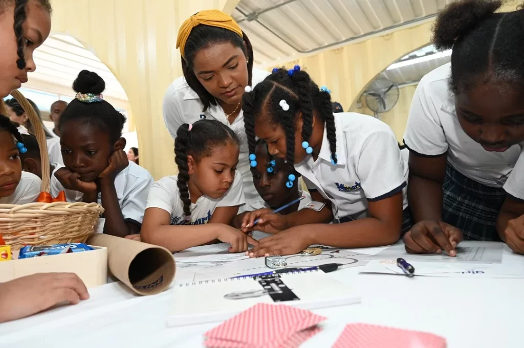 Santo Domingo.- Más de 70 niñas residentes en el sector El Dique, ubicado a orillas del río Ozama, participaron en una jornada educativa e interactiva organizada por el Voluntariado Banreservas y Mastercard. Durante la actividad se abordaron sobre la detección de fraudes, la criptología, los algoritmos y otros conceptos clave relacionados con las profesiones del futuro.