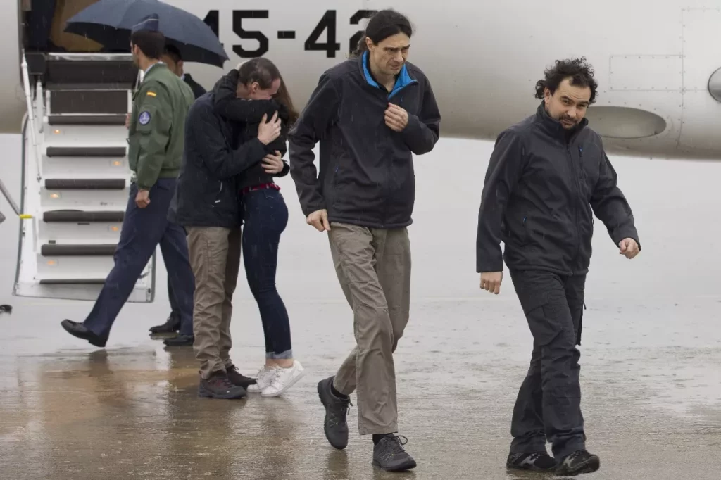 Su liberación se produjo el sábado y este domingo los tres tomaron un avión desde Turquía que aterrizó sobre las 10H00 locales (08H00 GMT) en la base militar de Torrejón de Ardoz, en las afueras de Madrid, informó una portavoz del gobierno.