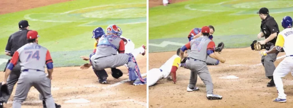 La jugada creó la reacción airada de los jugadores colombianos Tito Polo y Reynaldo Rodríguez, quienes fueron sacados de juego por el árbitro de home, Tripp Gibson III.