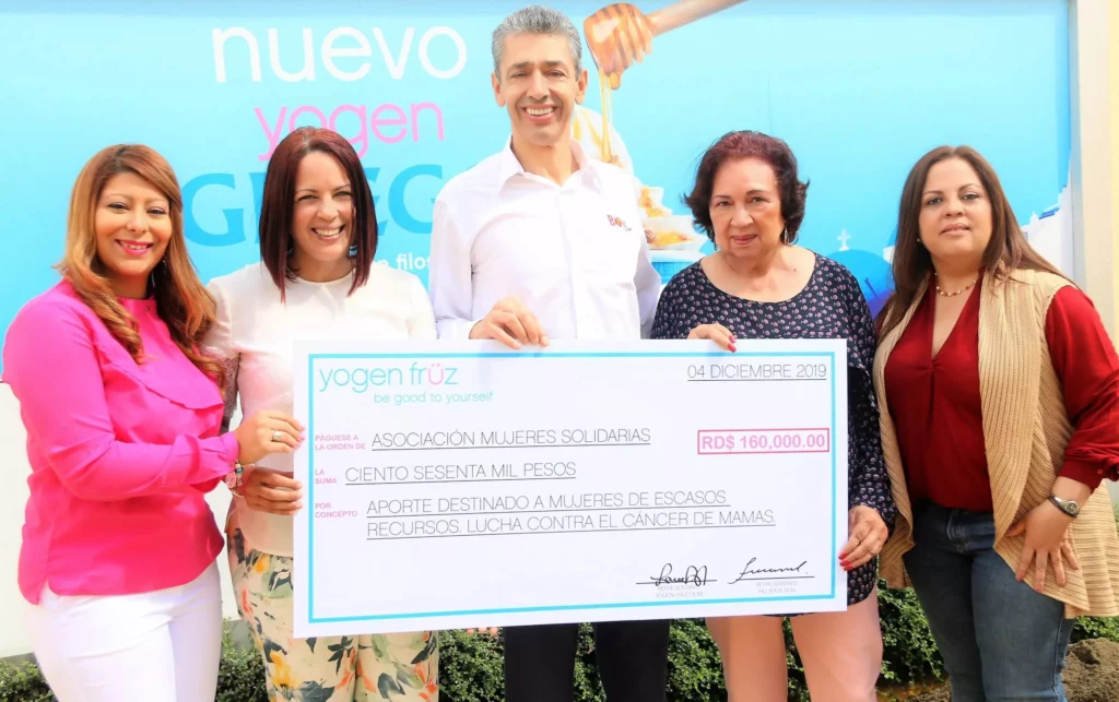 Santo Domingo.- Como cada año, Yogen Früz, con la colaboración con los consumidores de esta marca, donaron recursos económicos a la Asociación de Mujeres Solidarias, para contribuir con los programas de prevención y detección del cáncer de mamá que ejecutiva esa entidad benéfica en favor de damas de escasos recursos.