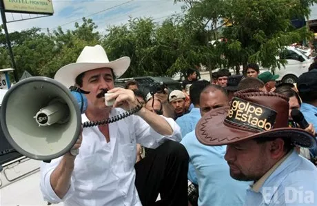 Esperamos que América Latina, en forma conjunta, los presidentes que no quieren les den golpes de Estado, condenen este golpe, pero que nos ayuden (también) a sacar a los dictadores para que vuelva la paz, exhortó Zelaya a través de un megáfono para hacerse oír ante sus seguidores y los periodistas.