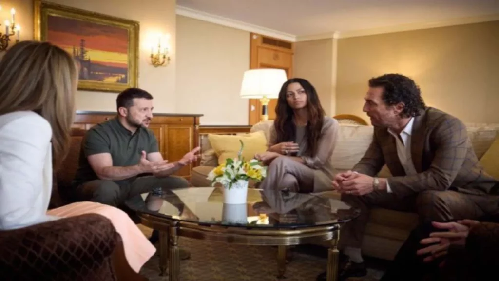 Zelenski también habló con McConaughey y su esposa de la situación en el campo de batalla y en el campo de batalla, especialmente en la región nororiental de Járkov, que se enfrenta a constantes bombardeos aéreos y ataques terrestres rusos.